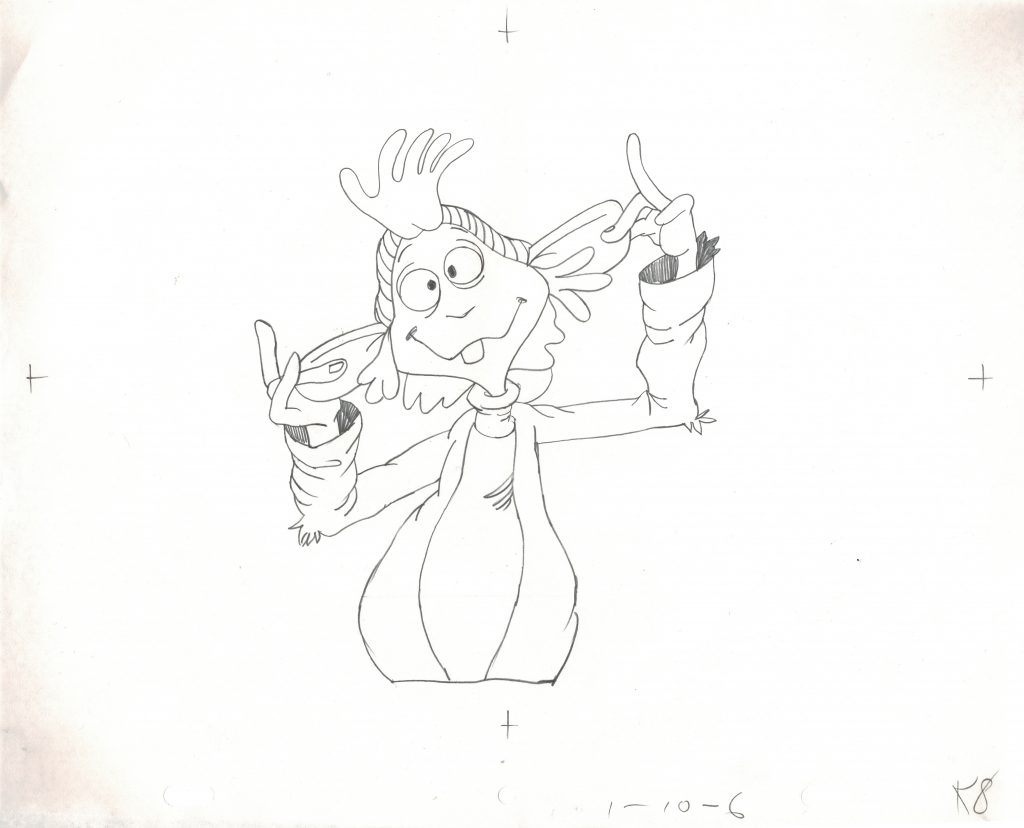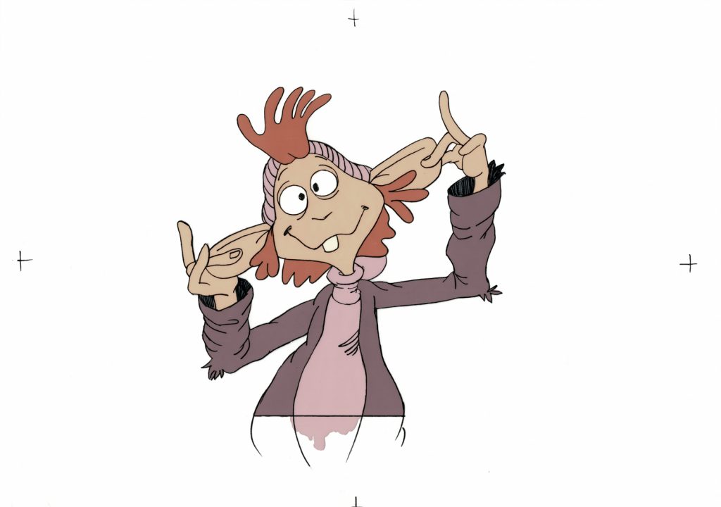 Perhaps I should have framed it with a green acetate over top of it to approximate the real scene, but I think it’s pretty cool as it is. And very cool getting to explain why it’s a real cel from A Cosmic Christmas, but that it doesn’t appear like that in the final product.