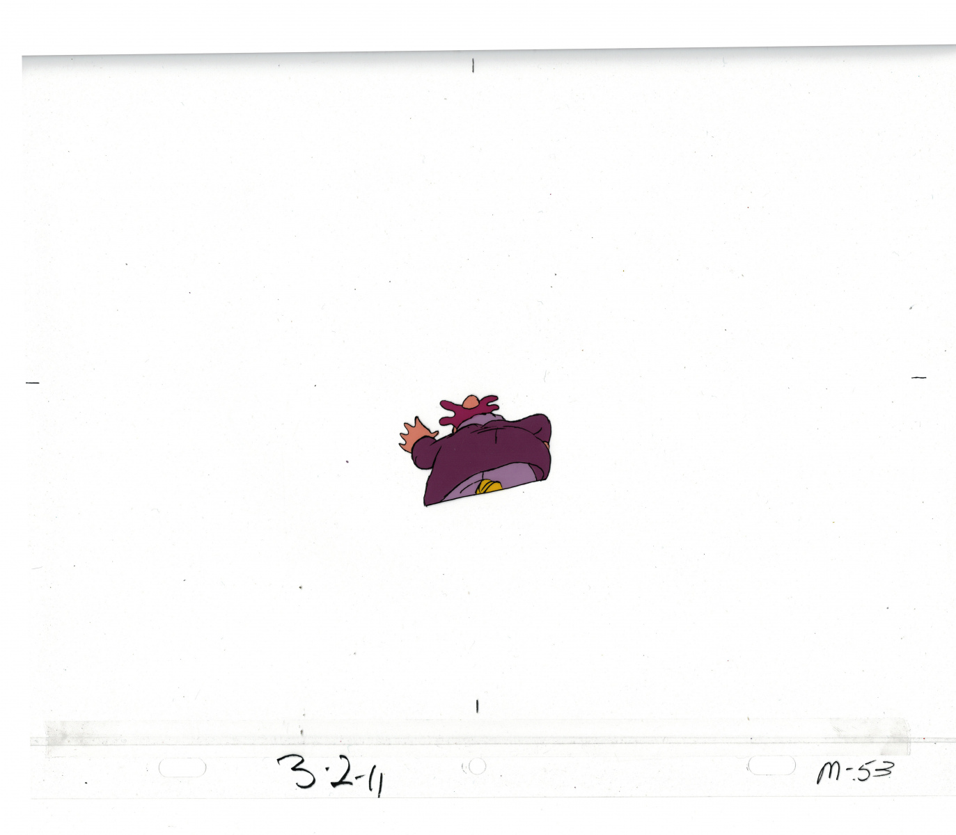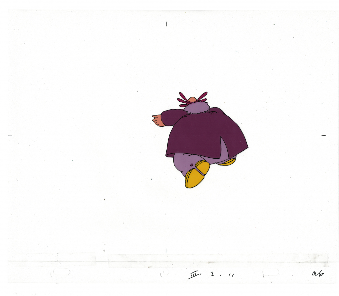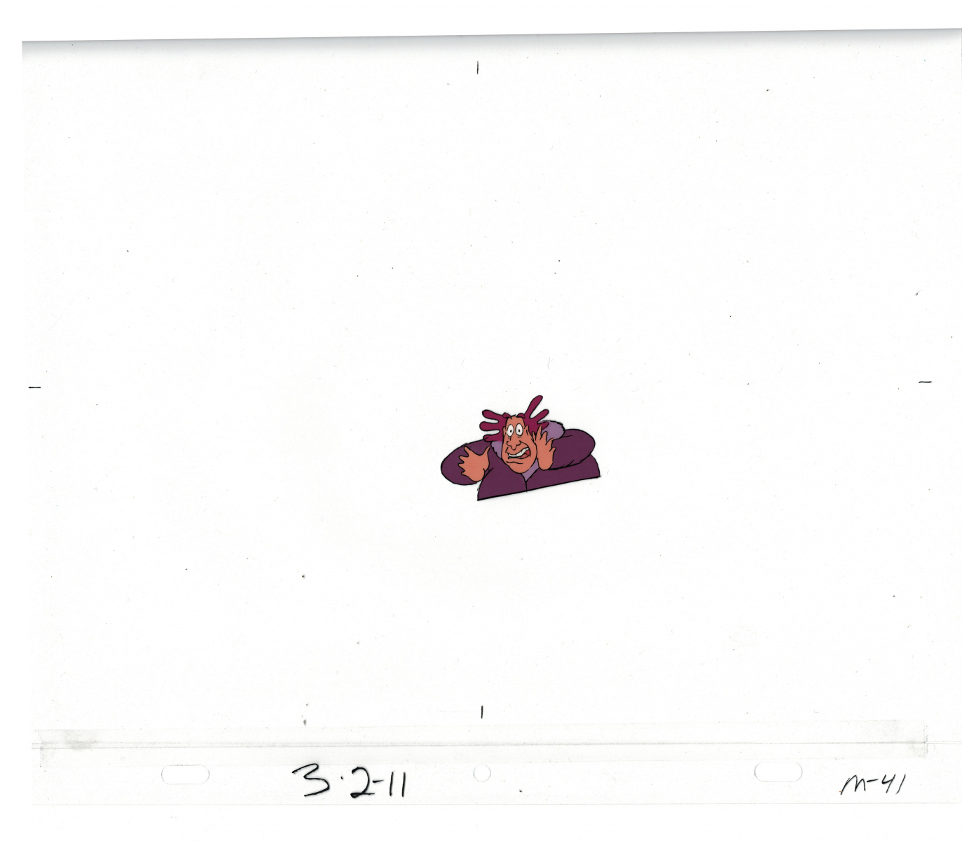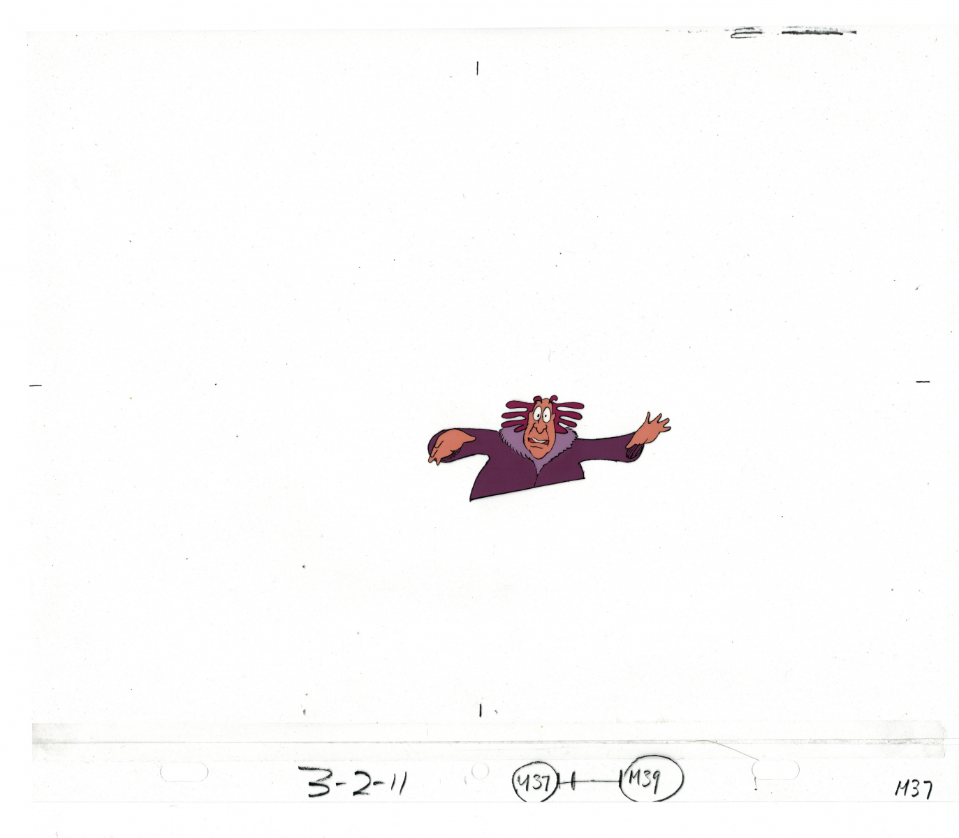 Another folder of original drawings and painted cels, this one for the Mayor counting to ten and running away. Includes several frames that were cut from the final edit.