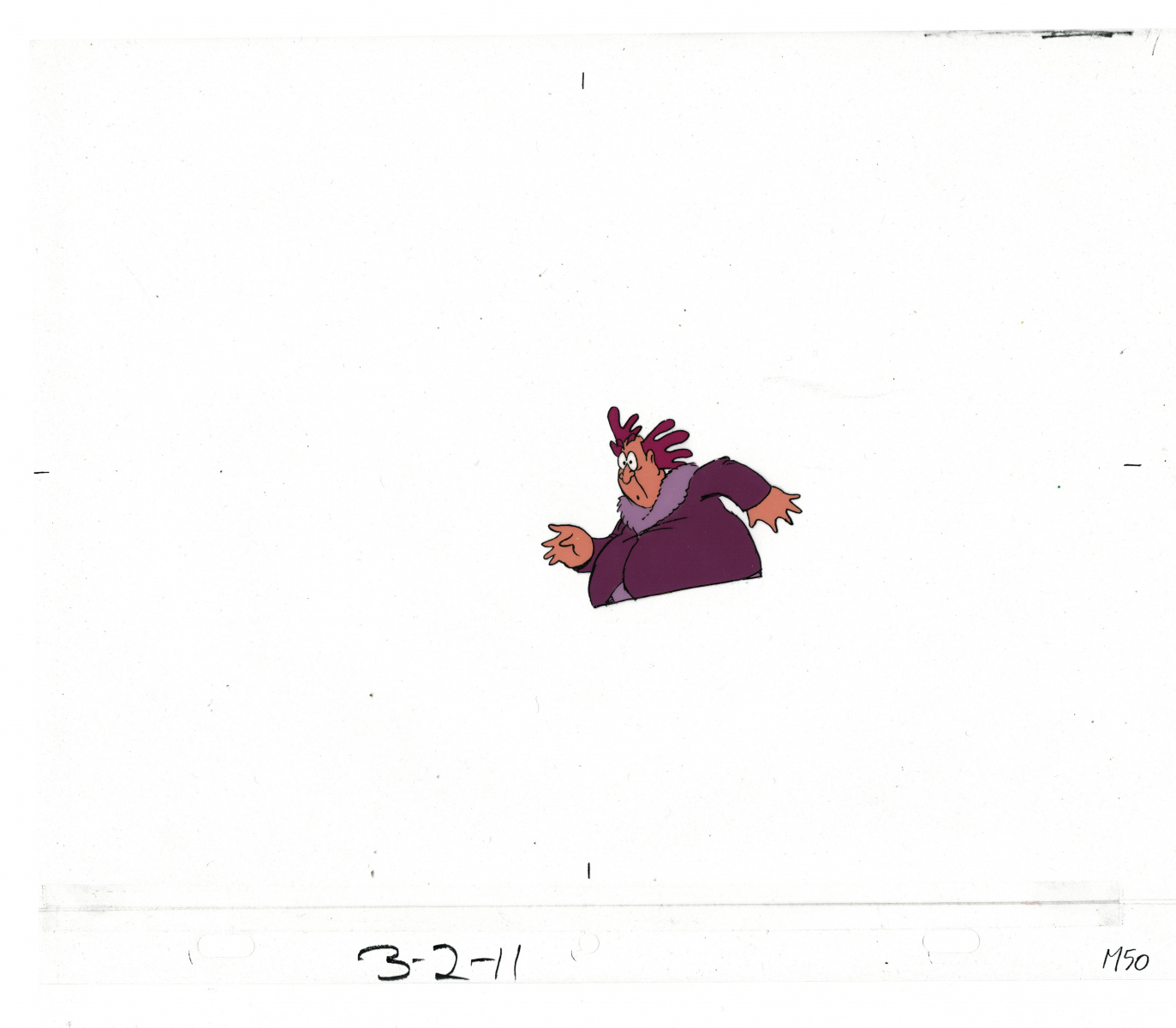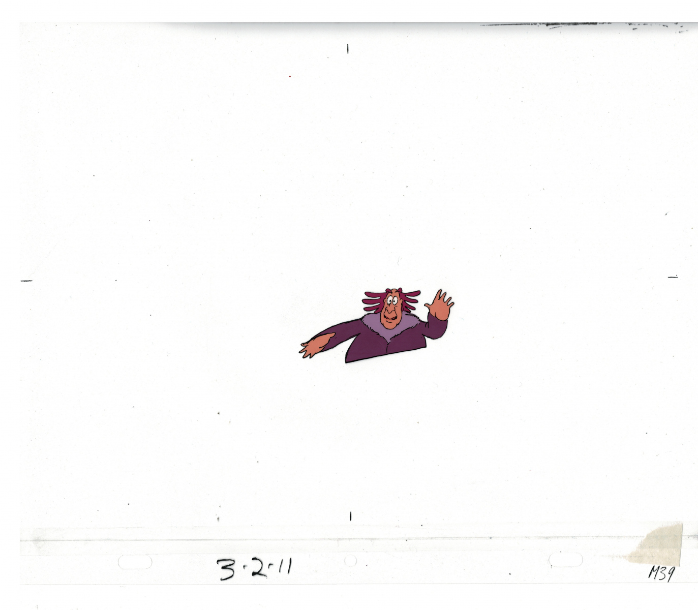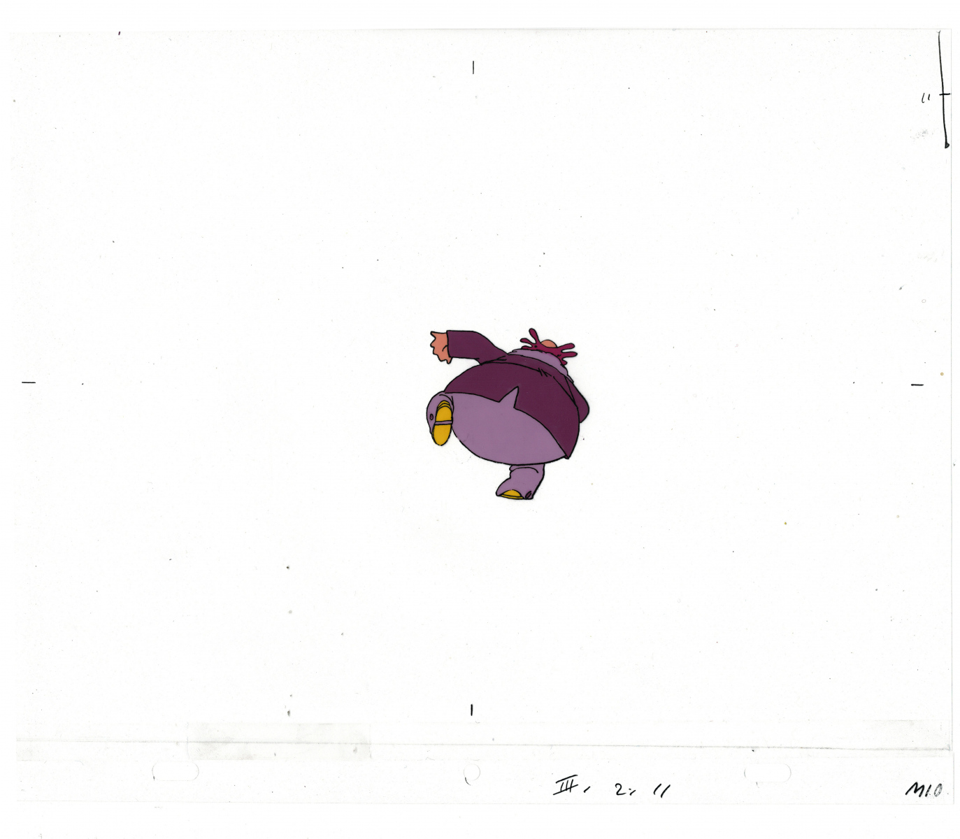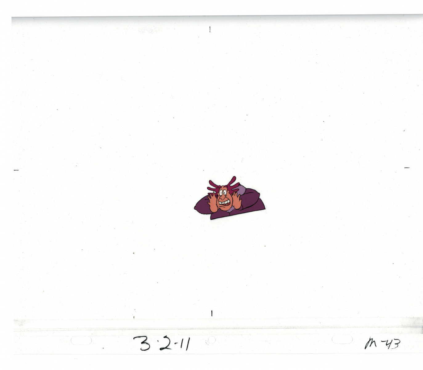 Another folder of original drawings and painted cels, this one for the Mayor counting to ten and running away. Includes several frames that were cut from the final edit.