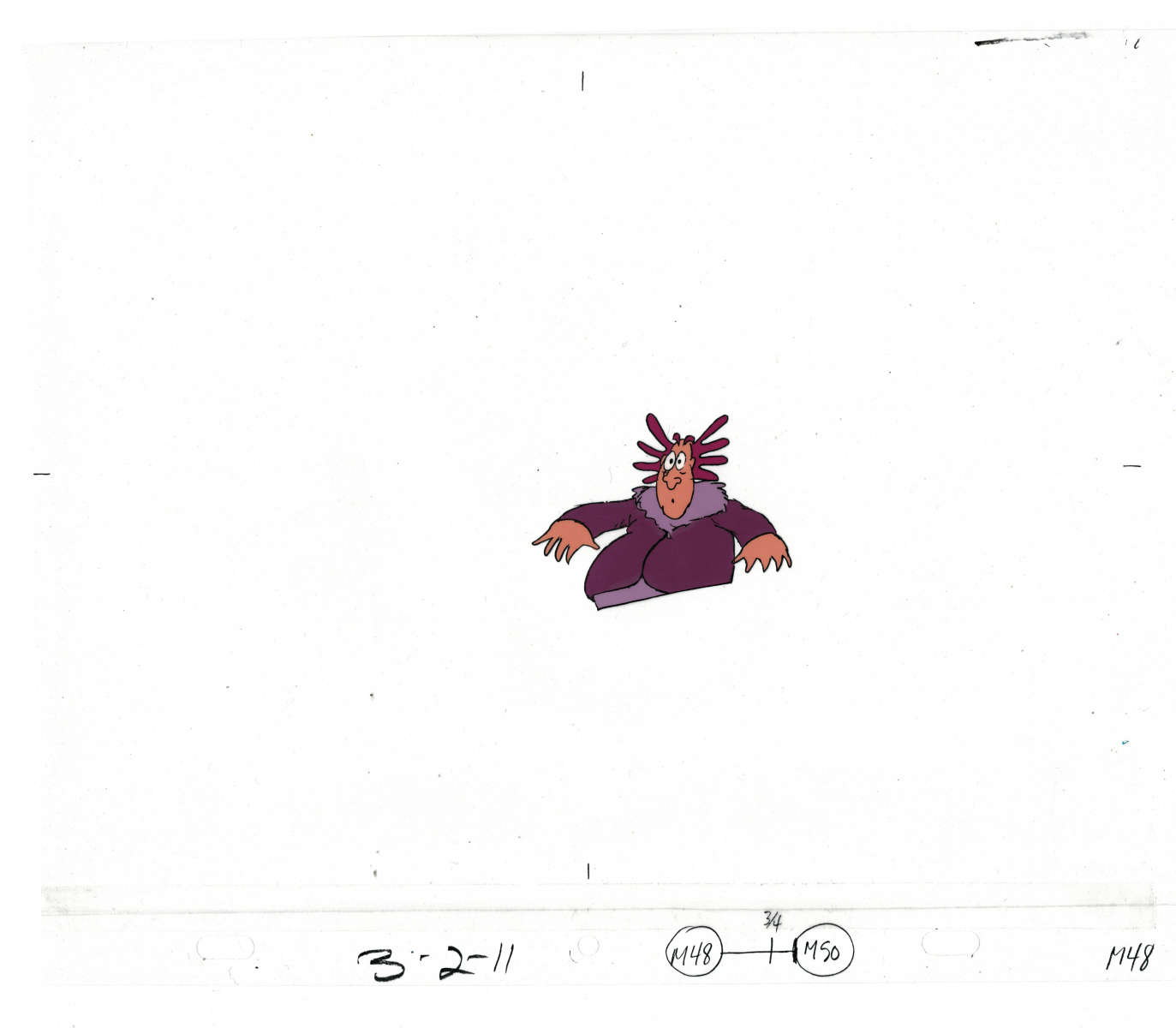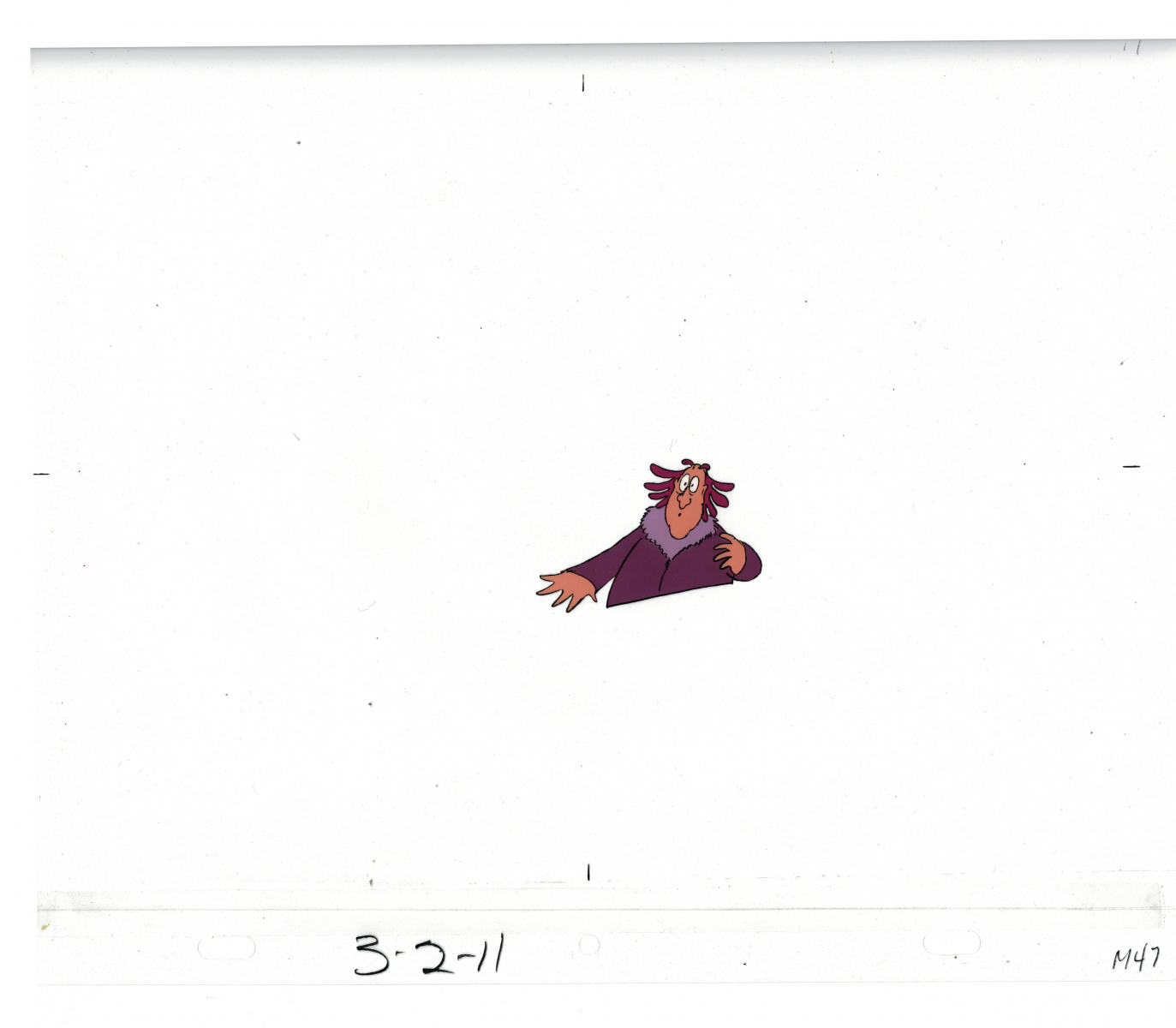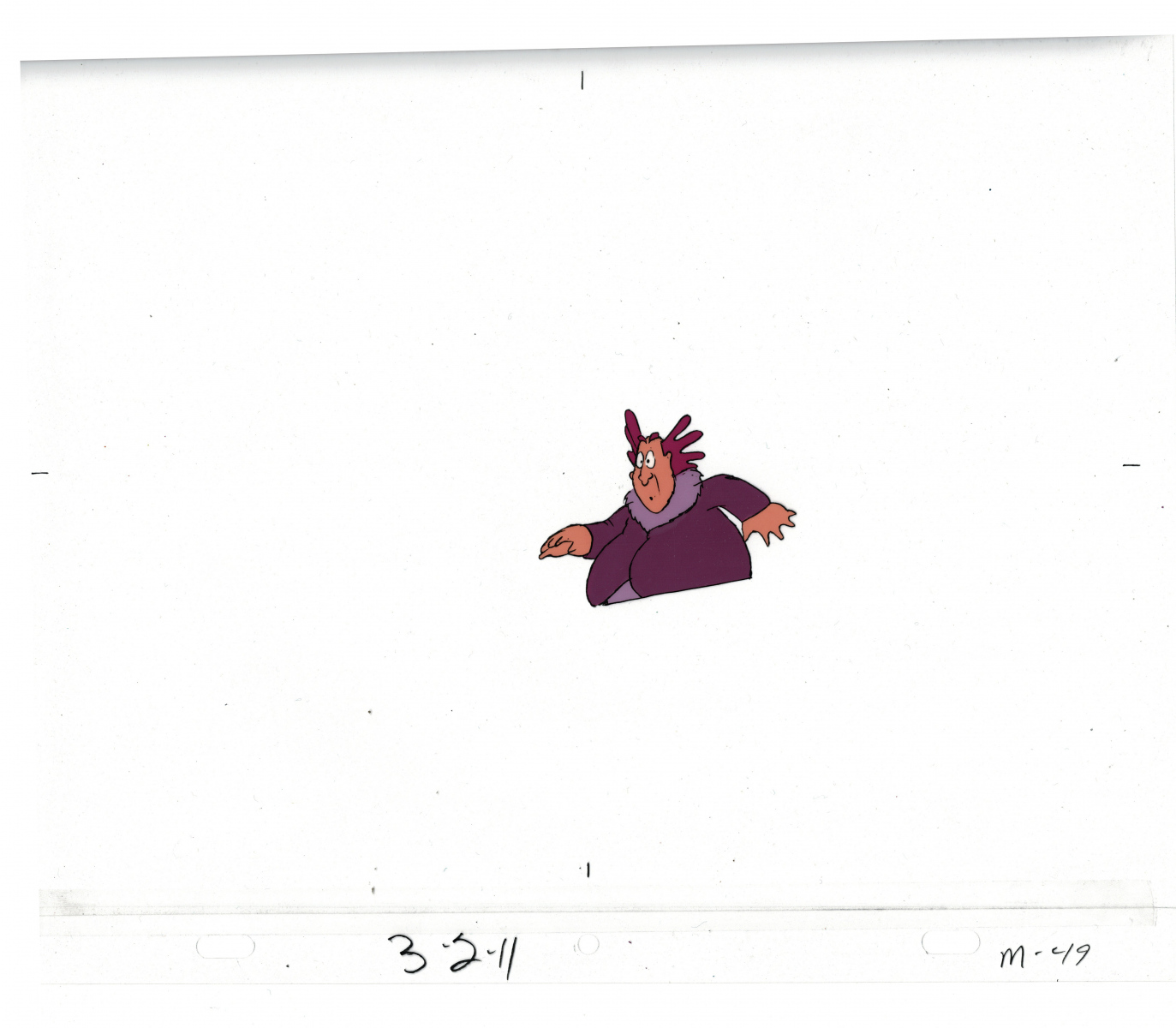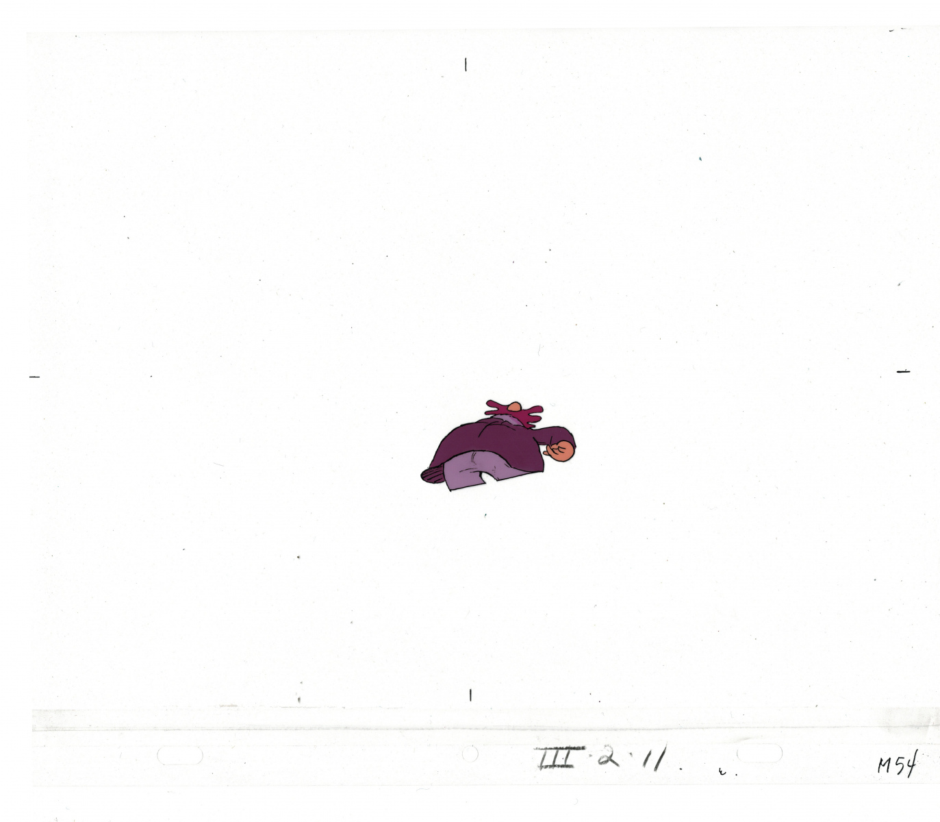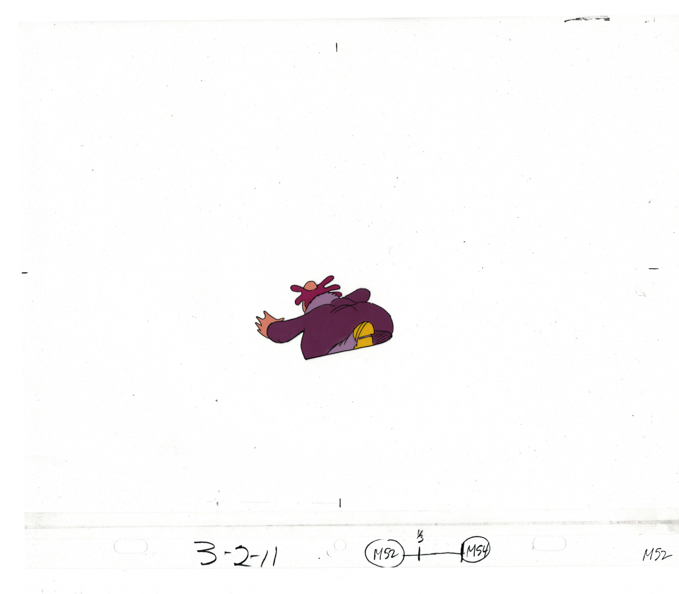 Another folder of original drawings and painted cels, this one for the Mayor counting to ten and running away. Includes several frames that were cut from the final edit.