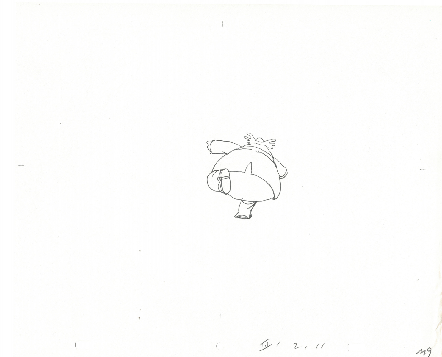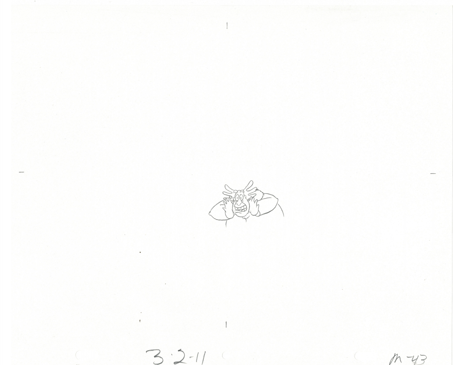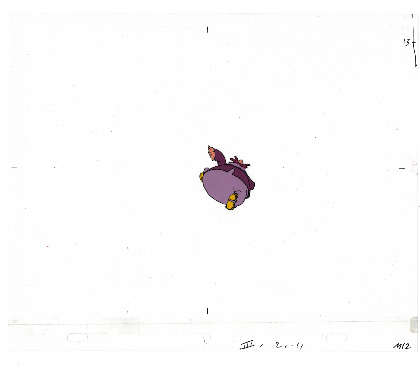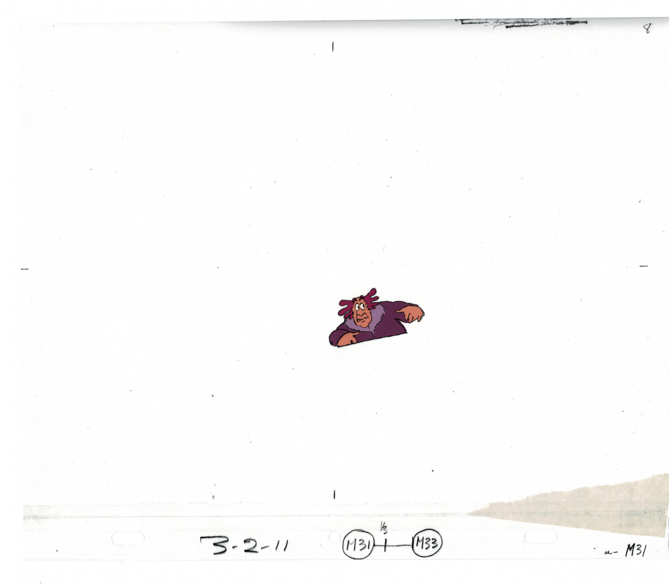 Another folder of original drawings and painted cels, this one for the Mayor counting to ten and running away. Includes several frames that were cut from the final edit.