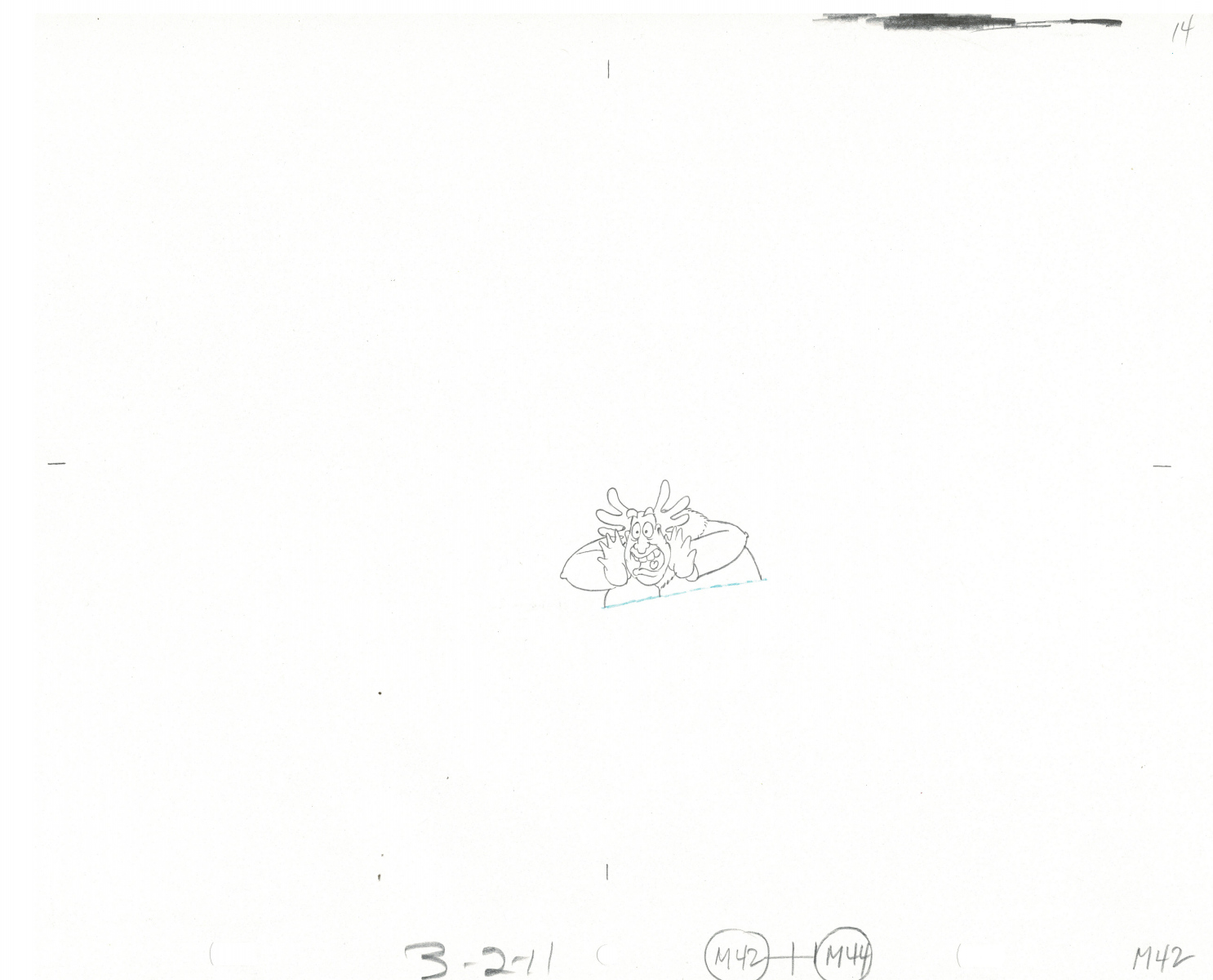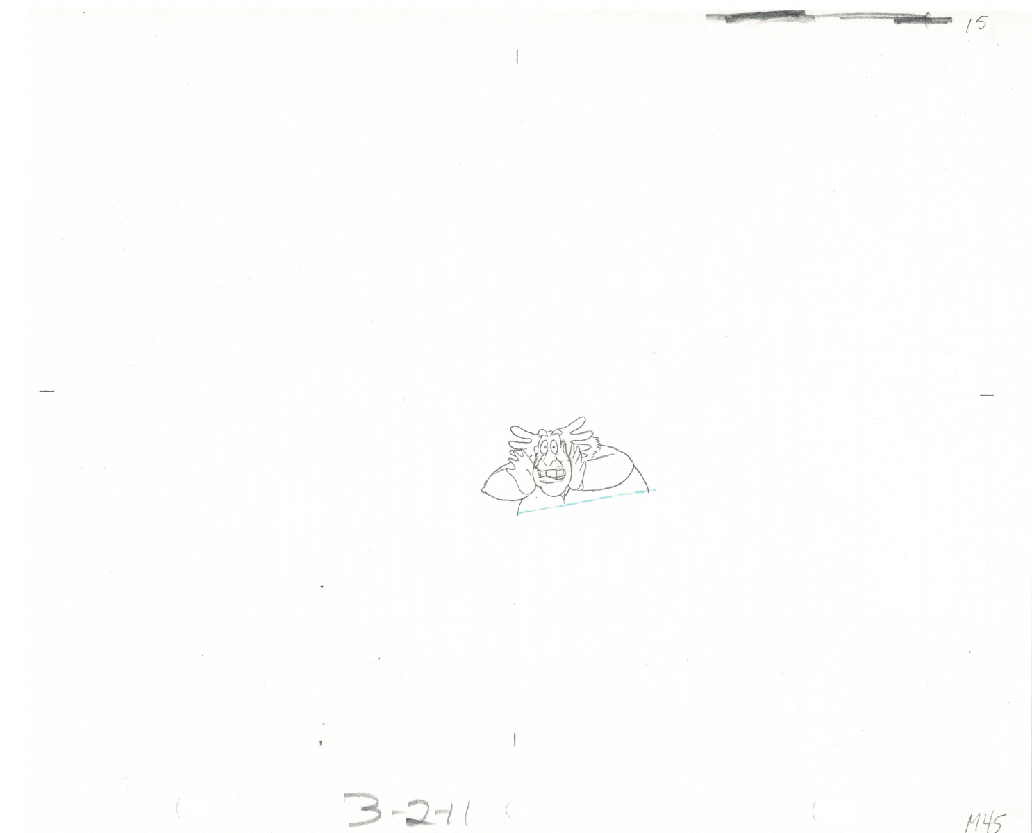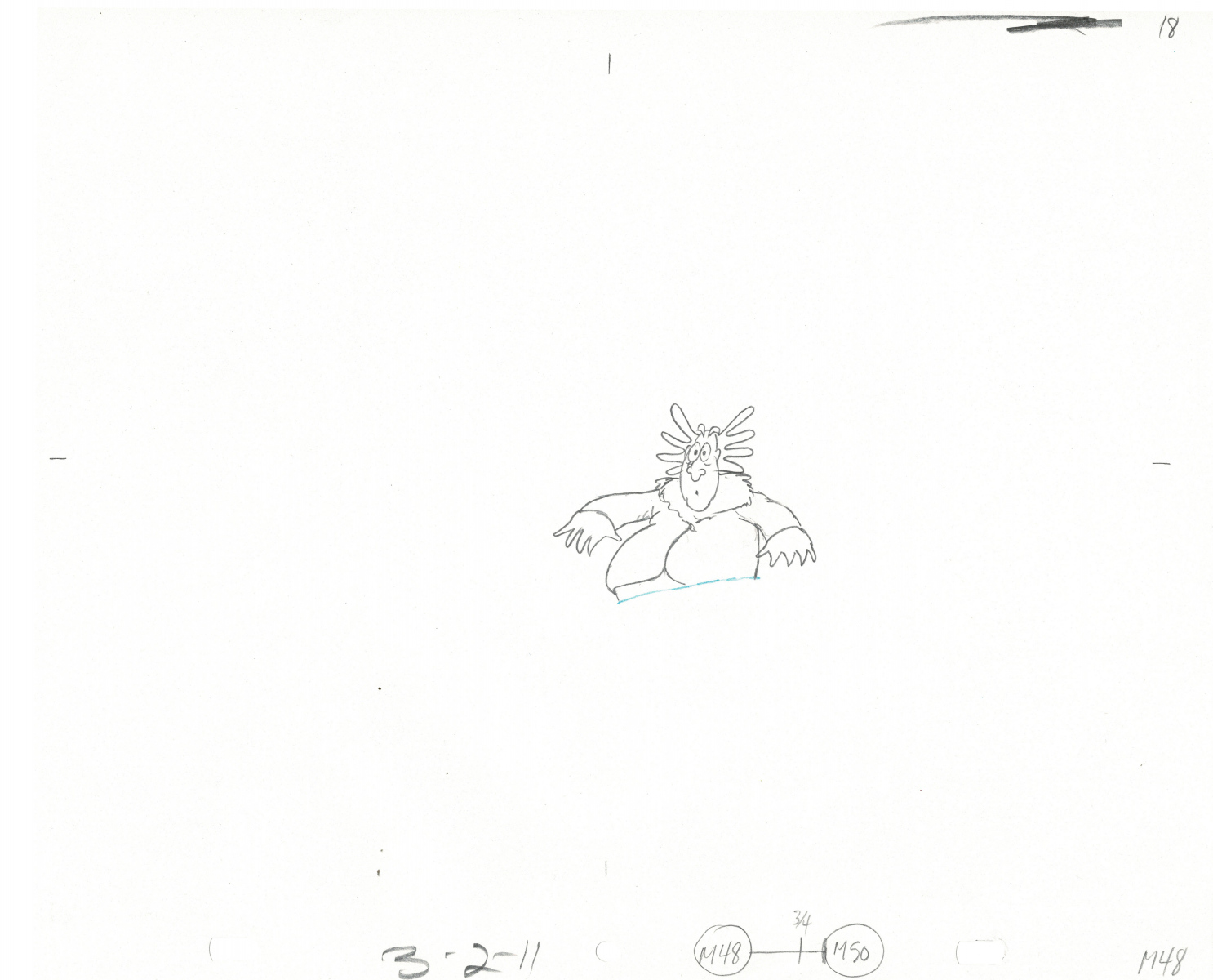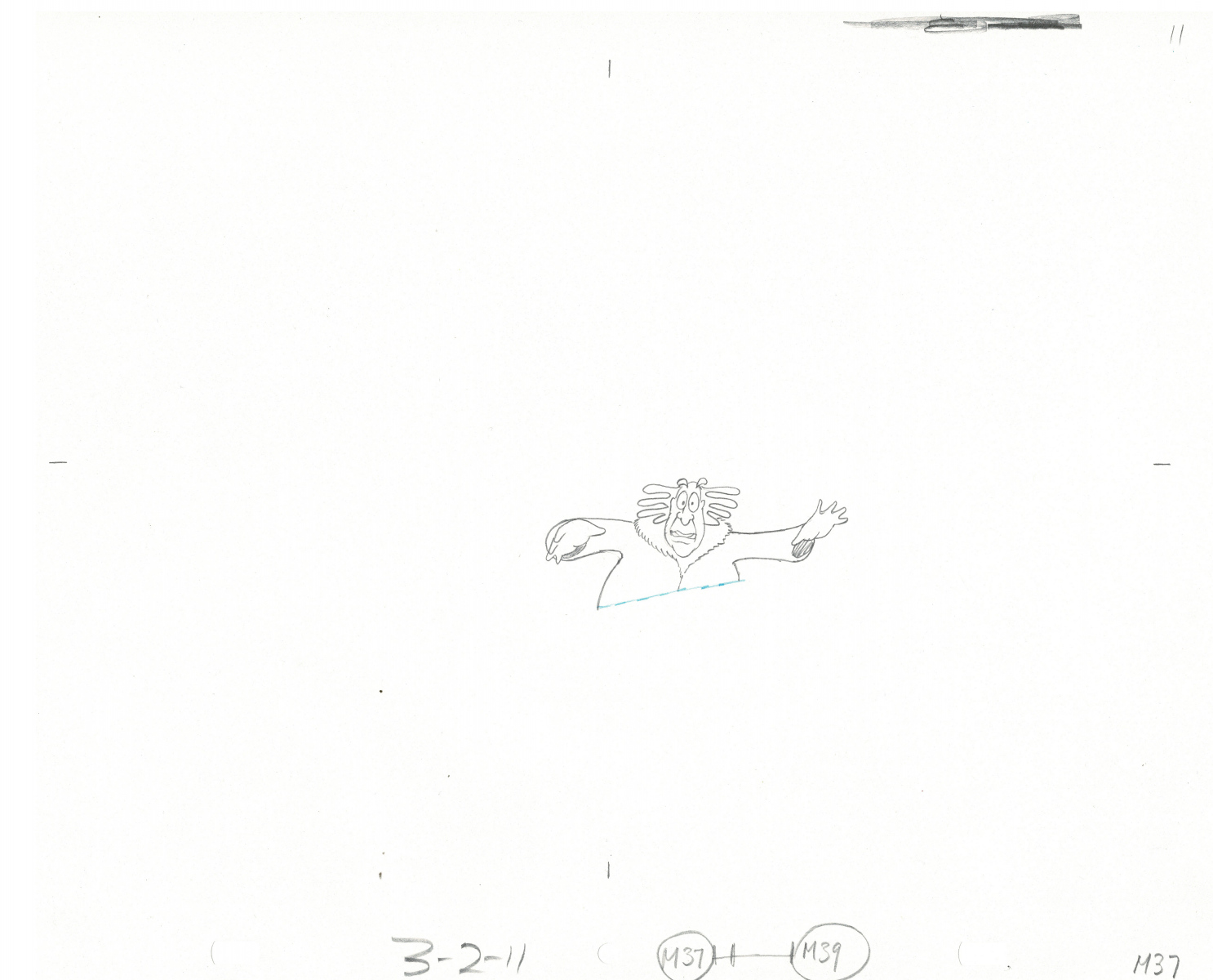 Another folder of original drawings and painted cels, this one for the Mayor counting to ten and running away. Includes several frames that were cut from the final edit.