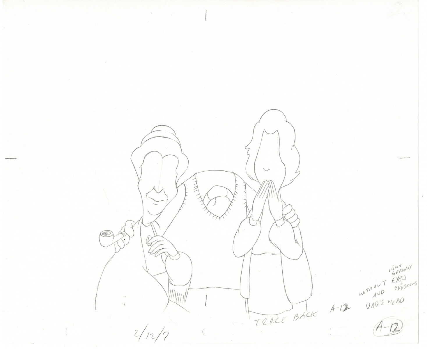 Now this is an interesting piece of production that I definitely don’t have an answer for… Animated cels for the scene where Peter introduces the aliens to his parents, but at some point this scene involved a gun? Time to find out what we know about it…