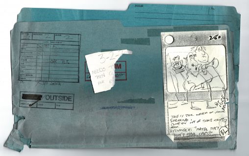 Another group of folders, with drawings and painted cels. This one seems to have been raided for some individual cels no doubt. Those aliens are hard to resist!